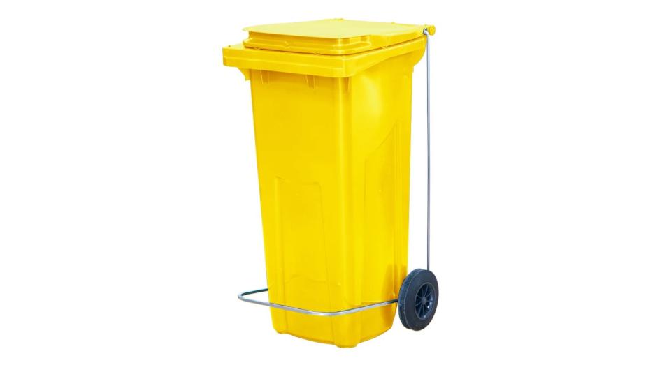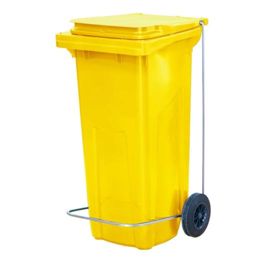 Бак для мусора 120 л. 55*45*96 см. желтый, с крышкой на колёсах с педалью /1/