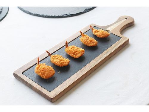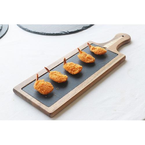 Блюдо для подачи прямоуг. 45*15 см. h=1,5 см. черное, сланец, на дерев. подставке с ручкой MGprof (WB-003) /1/16/