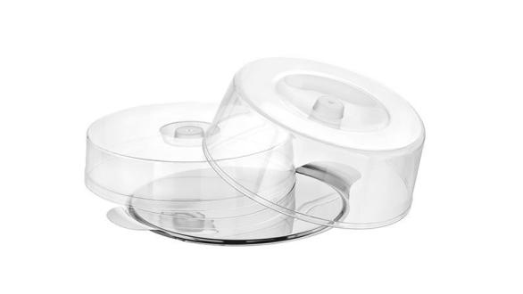 В комплекте с крышкой для сохранения свежести кондитерских изделий.