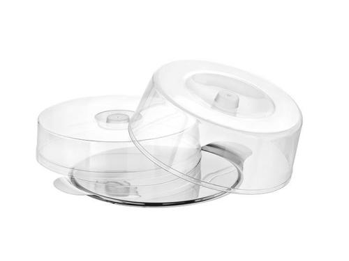 Блюдо для торта d=30 см. нерж. с 2-мя крышками h=7 см. h=11 см. полистирол APS /1/6/