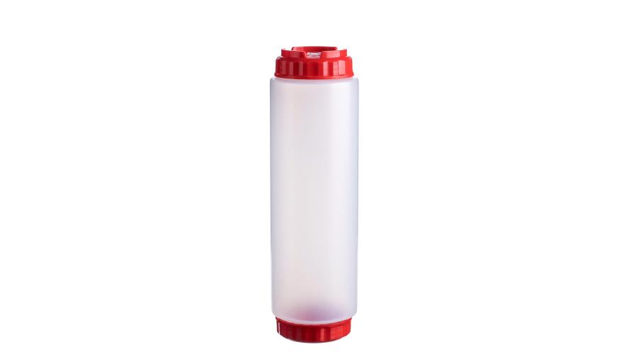 Емкость для соуса 1000 мл. d=75 мм. h=257 мм. c 2 крышками, с силик. носик. широкая прозрачная, крышки красные GP /1/96/ ВДОХНОВЕНИЕ