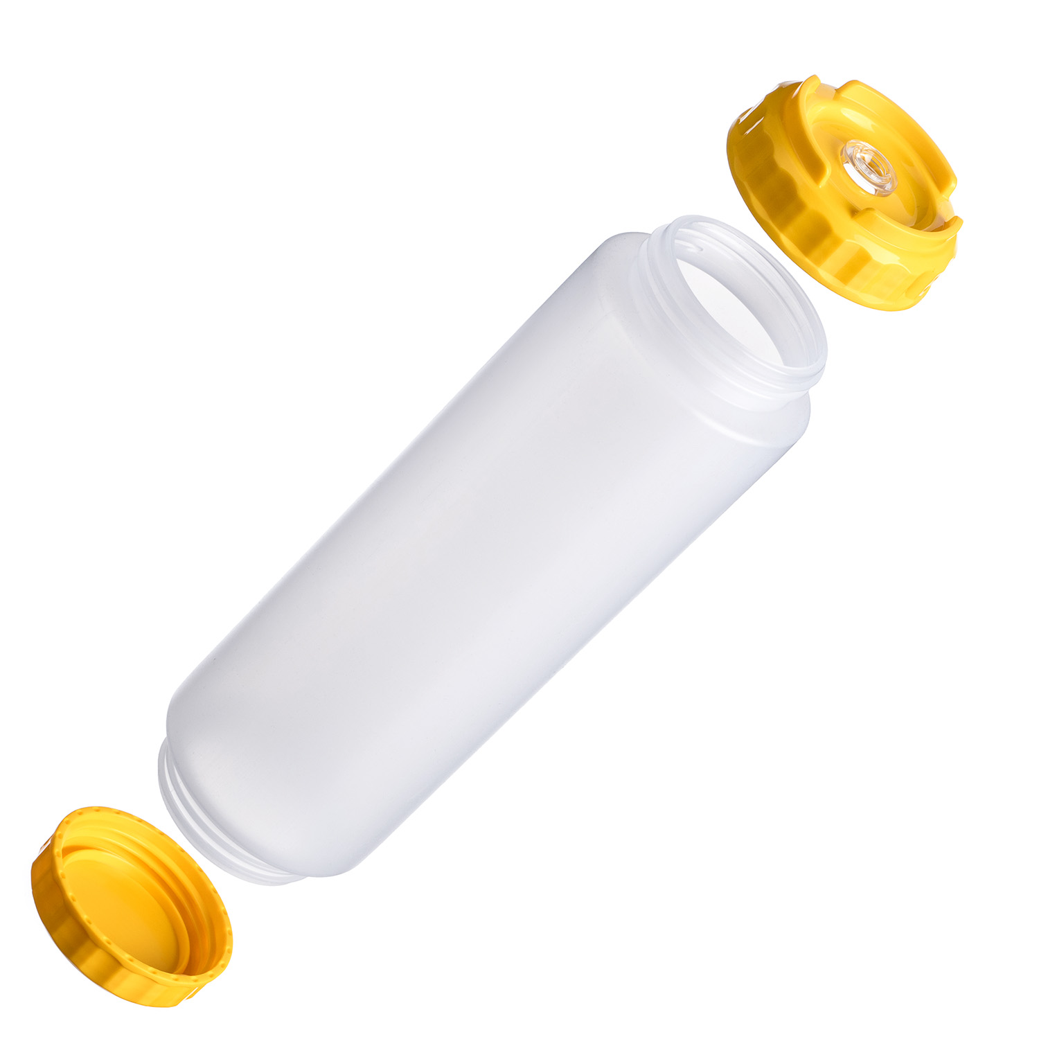 Емкость для соуса 1000 мл. d=75 мм. h=257 мм. c 2 крышками, с силик. носик. широкая прозрачная, крышки желтые GP /1/96/ ВДОХНОВЕНИЕ