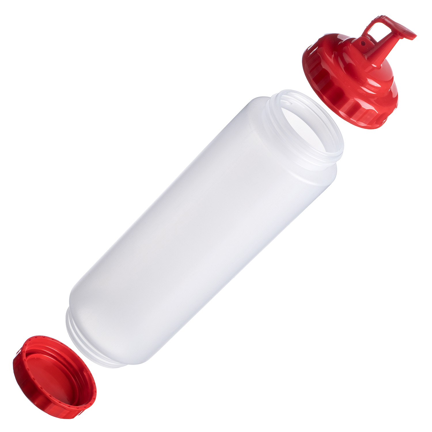 Емкость для соуса 1000 мл. d=75 мм. h=295 мм. c 2 крышками прозрачная, крышки красные GP /1/96/