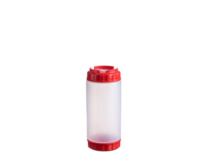 Емкость для соуса 500 мл. d=70 мм. h=166 мм. с 2 крышками, с силик. носик. широкая прозрачная, крышки красные GP /1/96/ ВДОХНОВЕНИЕ