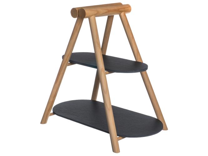 Этажерка 2-х ярусная 31*13,5/41*18,5 см. h=37 см. овальная с дерев. ножкой черная, сланец MGprof /1/5/ АКЦИЯ