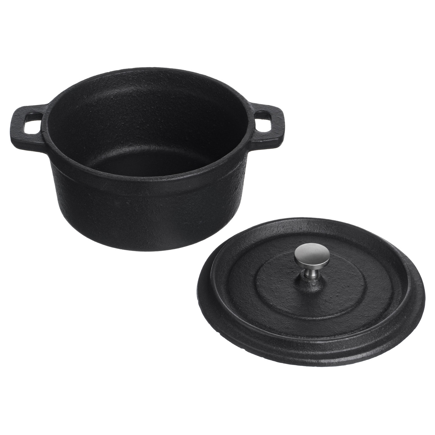 Кастрюля для запекания 550 мл. d=120 мм. h=80 мм. с крышкой, черная, чугун /1/