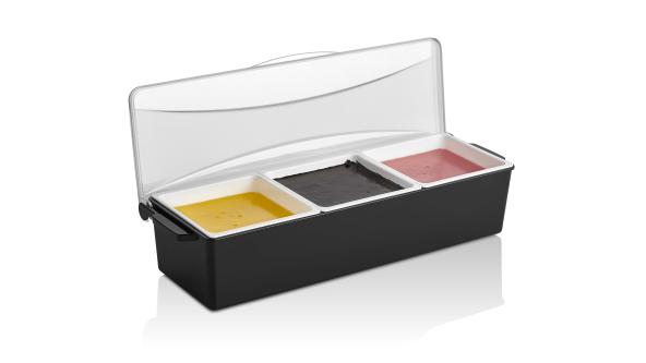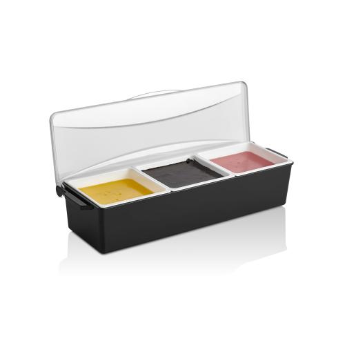 Контейнер для фруктов, специй и соусов 3 отд. по 0,85 л. черный, пластик. GP /1/12/