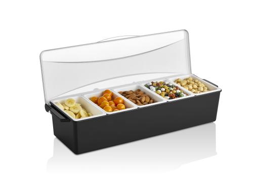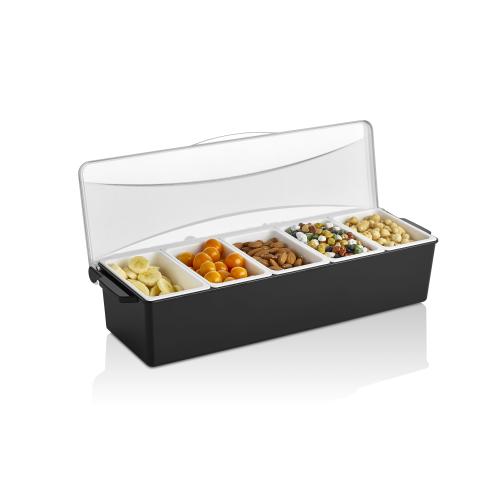 Контейнер для фруктов, специй и соусов 5 отд. по 0,45 л. черный, пластик. GP /1/12/