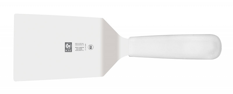 Лопатка 27,5 см. изогнутая раб. часть 11*9 см. нерж. широкая с пластик. ручкой, белая Icel /1/6/