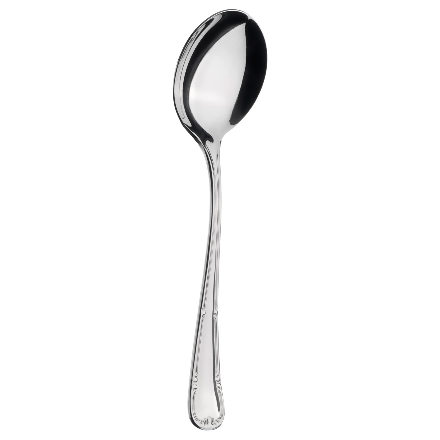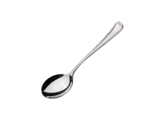 Ложка для бульона Abert Henry VIII – профессиональный столовый прибор, оформленный в классическом стиле с элегантным узором, проходящим по кромке ручки.
