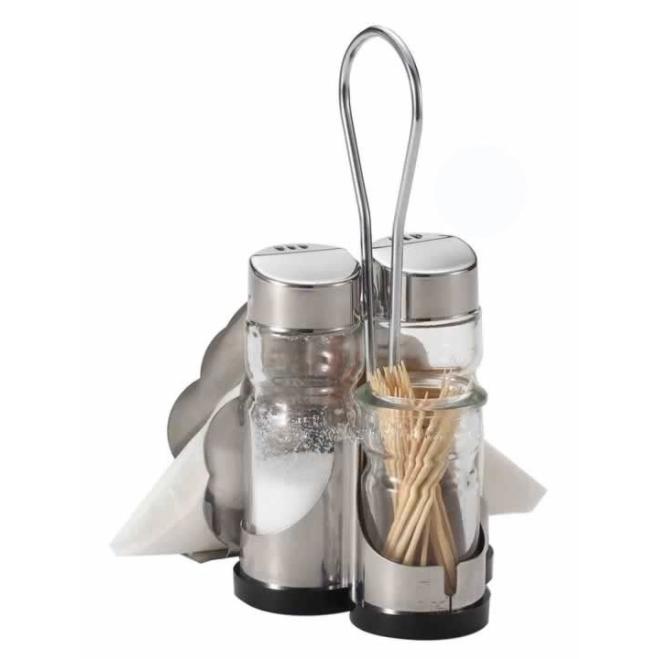 string(262) "Набор предметов для специй с салфетницей, в который входит солонка и перечница + стаканчик для зубочисток.