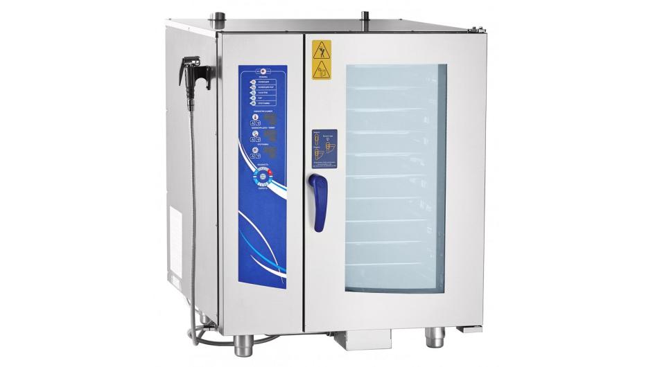 Режим конвекционного парообразования. Этот режим является комбинацией преимуществ режима парообразования и конвекции, при котором достигается высокая скорость циркуляции воздуха, нагоняемого внутренним вентилятором, что гарантирует правильную среду приготовления для всех продуктов и идеальный уровень влажности. Этот режим позволяет реализовать технологические решения приготовления пищи, которые ранее были практически недоступны, и может быть реализован только в пароконвектоматах. Подходит для приготовления всех видов продуктов. Приготовление большей части классических вторых блюд с применением комбинированного режима позволяет Вам готовить блюда за короткое время без использования жиров, без риска подгорания, весовые потери снижаются на 30-50% процентов.
