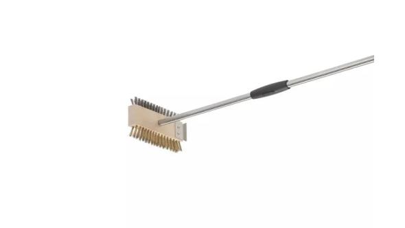 string(786) "Двухсторонняя щетка для чистки гриля со скребком и металлической щетиной из латуни и железа. Щетка снабжена трубчатой ручкой круглого сечения из нержавеющей стали. Торцевая рукоятка и промежуточная (скользящая) втулка изготовлены из ударопрочного теплозащитного полимера. Стальная щетина обеспечивает устранение самой сложной грязи, а щетина из латуни идеально подходит для очистки решеток гриля от остаточного загрязнения."