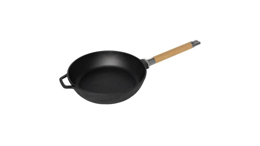 Сковорода d=28 см. h=6,5 см. 3,45 л. чугун. глубокая со съем дерев. ручкой /1/8/