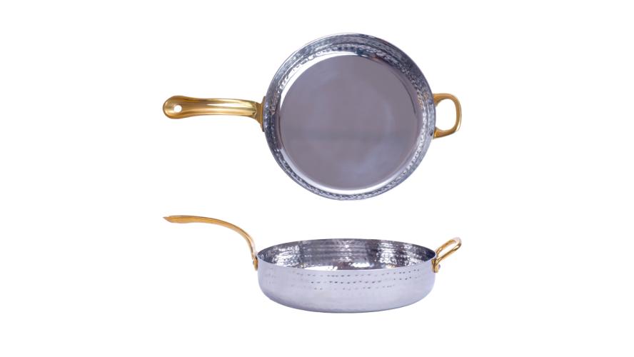 Сковорода порц. d=18,5 см. h=4,5 см. 1,05 л. нерж. глубокая с 2 ручками латунь MGsteel /1/36/