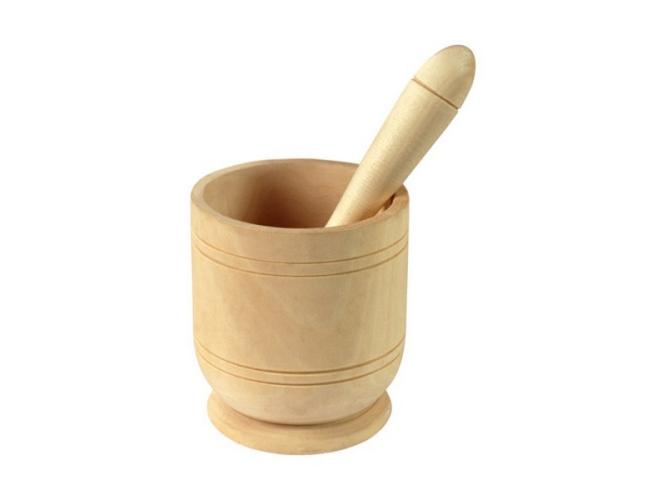 Деревянную ступку удобно держать в руке. Она довольна легкая.