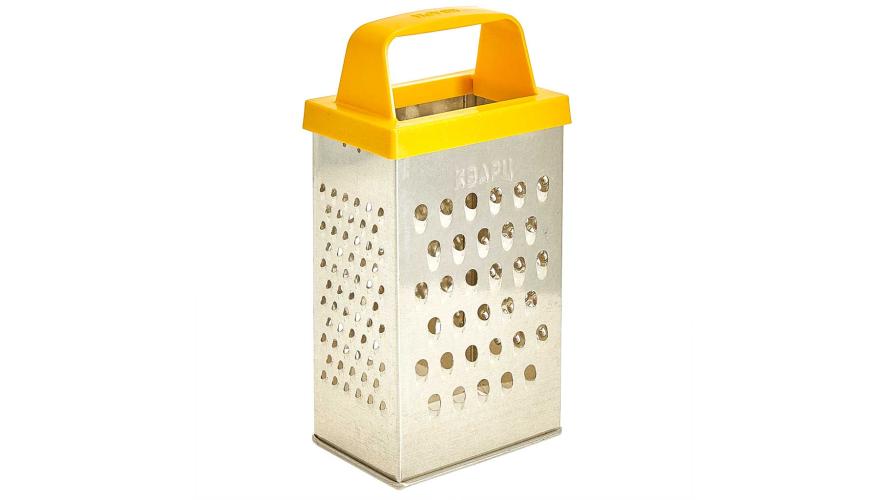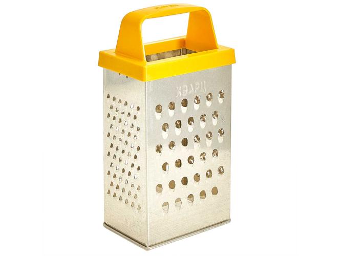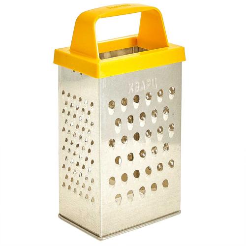 Четырехгранная терка из белой жести оснащена удобной ручкой.