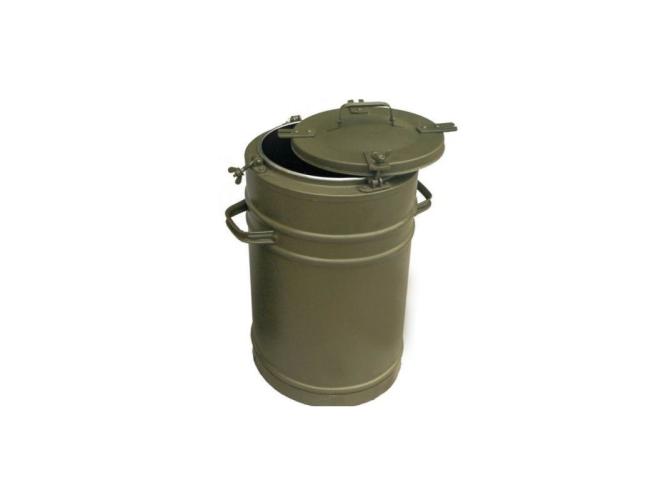 Термос армейский состоит из крашеного металлического контейнера корпуса, вынимающейся нержавеющей колбы для удобства очистки и крышки притягиваемых болтами с барашками.