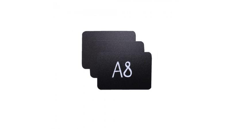Меловой ценник с двусторонней шероховатостью черный формат А8 изготовлен из полипропилена 0.5 мм. (скругленные углы)