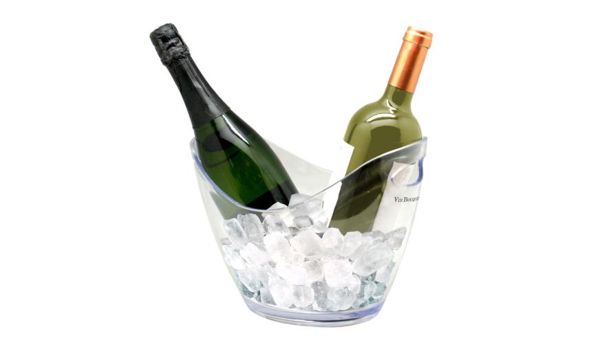 Ведро для шампанского 3 л. пласт. 265*200/155*110 мм. h=200 мм. с ручками для 2-х бутылок, прозрачное VB /1/12/