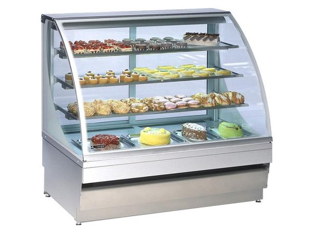 Корпус прибора изготовлен из нержавеющей стали. Подсветка располагаются под каждой полкой, верхняя полка имеет отдельное освещение, таким образом предлагаемые посетителям товары демонстрируются максимально эффективно. А за счет гнутого стекла открывается максимальный обзор. Наклон стеклянных полок можно регулировать от 0 до 7°. Стеклянная задняя дверца позволяет менять расположение блюд за прилавком, не выходя в зал.