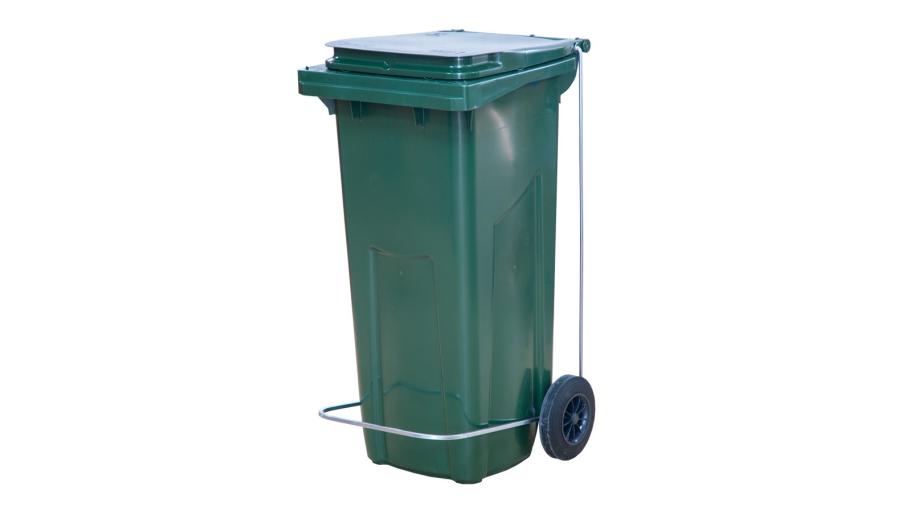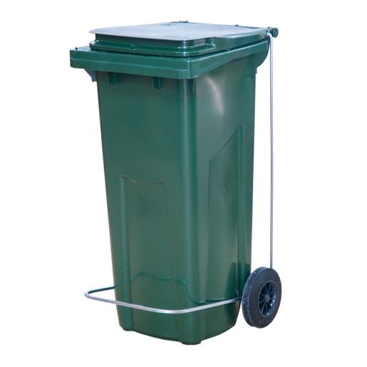 Бак для мусора 120 л. 55*45*96 см. зеленый, с крышкой на колёсах с педалью /1/
