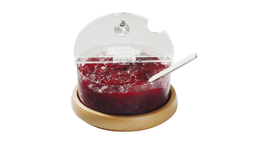 Емкость для джема охлаждаемая 0,6 л. d=14 см. h=9 см. с крышк. на дерев. подст. APS /1/
