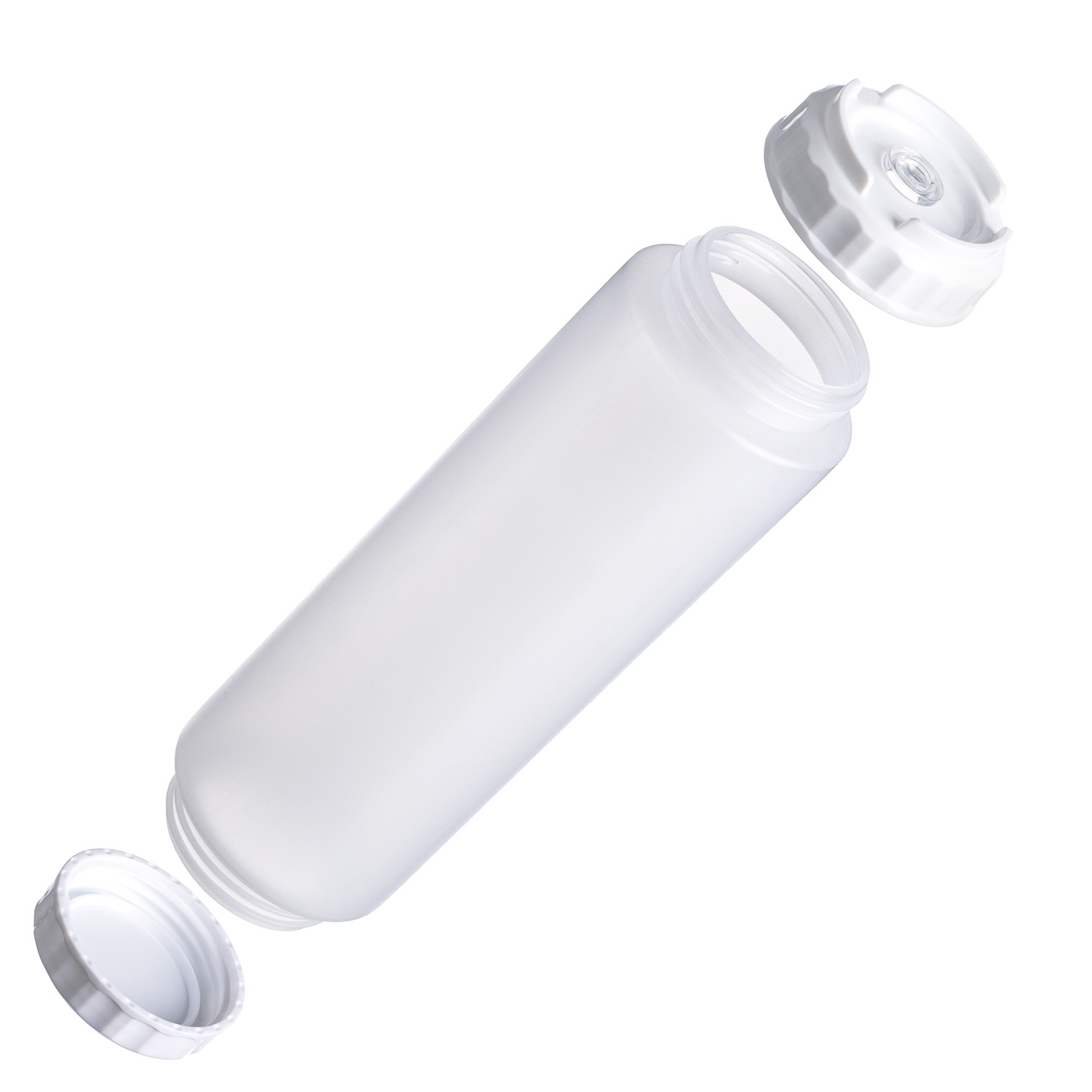 Емкость для соуса 1000 мл. d=75 мм. h=257 мм. c 2 крышками, с силик. носик. прозрачная, крышки белые GP /1/96/