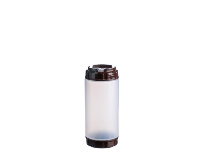 Емкость для соуса 500 мл. d=70 мм. h=166 мм. с 2 крышками, с силик. носик. широкая прозрачная, крышки коричневые GP /1/96/