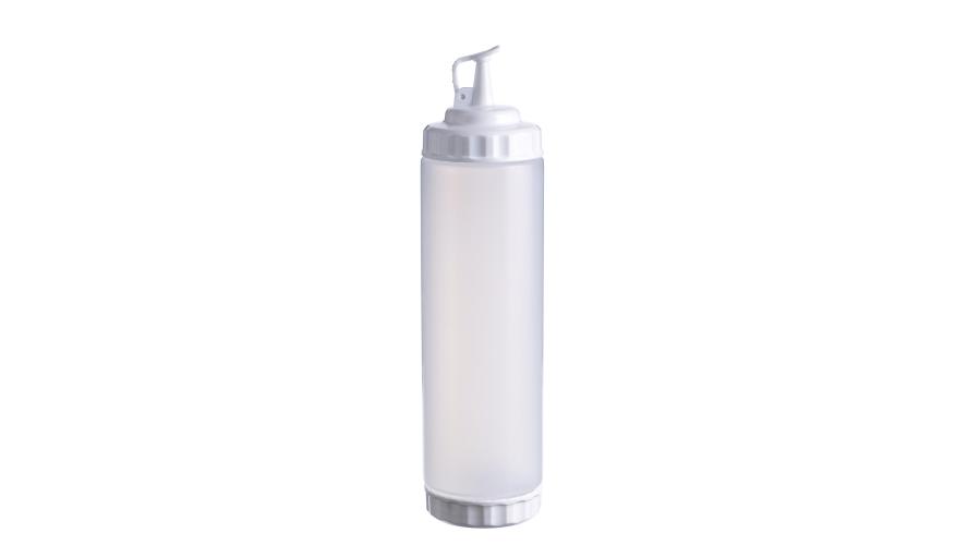 Емкость для соуса 750 мл выполнена из прочного пищевого пластика и предназначена для профессионального использования в сегменте HoReCa. Конструкция с двумя откручивающимися крышками обеспечивает удобство наполнения, использования и ухода. Дозирующий носик с крышкой-клапаном предотвращает проливы и защищает содержимое от загрязнений. Белый цвет служит маркировкой для майонеза и других белых соусов. Прозрачный корпус облегчает визуальный контроль содержимого. Подходит для мытья в посудомоечной машине.