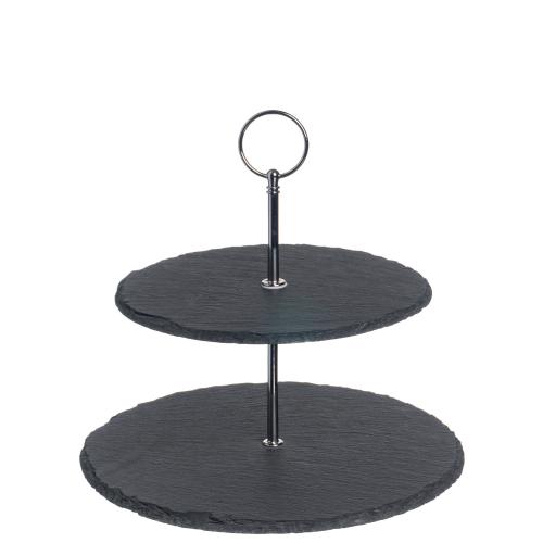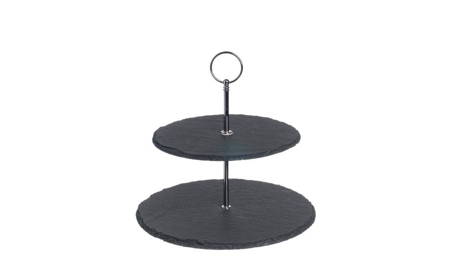string(560) "Этажерка под закуски, изготовленная из натурального природного материала – сланца. Сочетание естественной фактуры и строгого серого цвета камня смотрится необычайно стильно, она не только послужит отличным украшением праздничного стола, но позволит красиво подать приготовленные закуски или сладости."