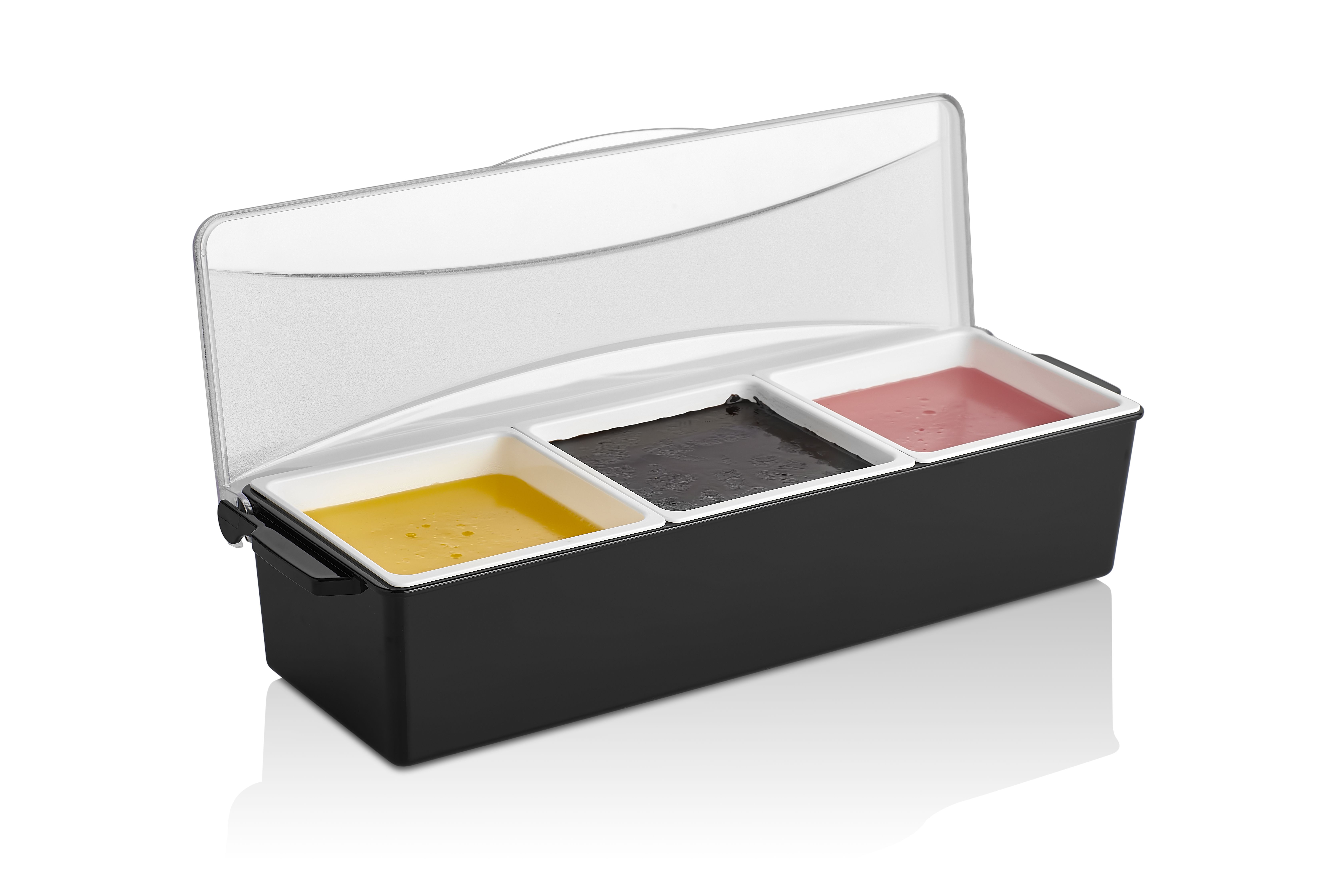 Контейнер для фруктов, специй и соусов 3 отд. по 0,85 л. черный, пластик. GP /1/12/