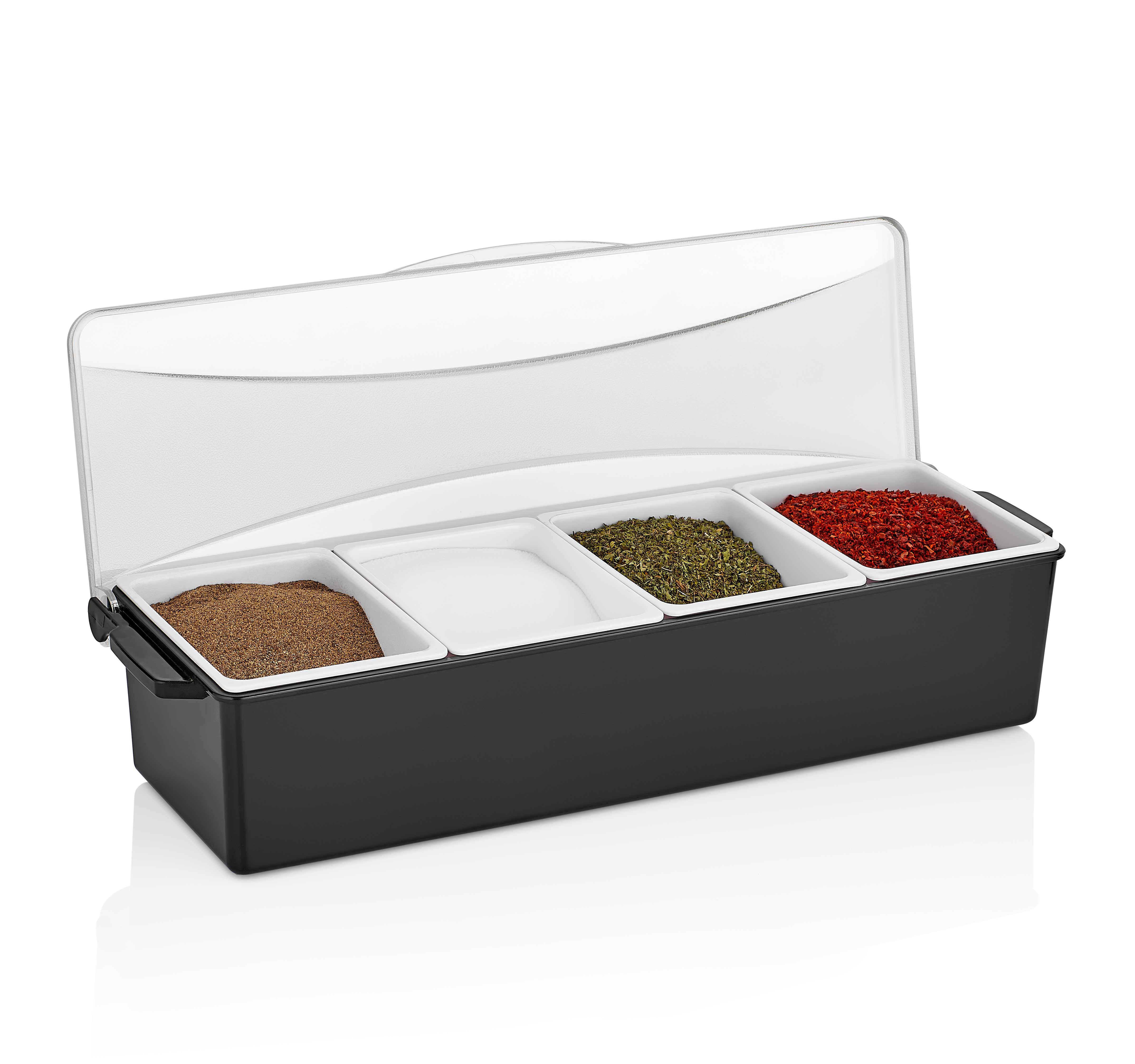 Контейнер для фруктов, специй и соусов 4 отд. по 0,6 л. черный, пластик. GP /1/12/