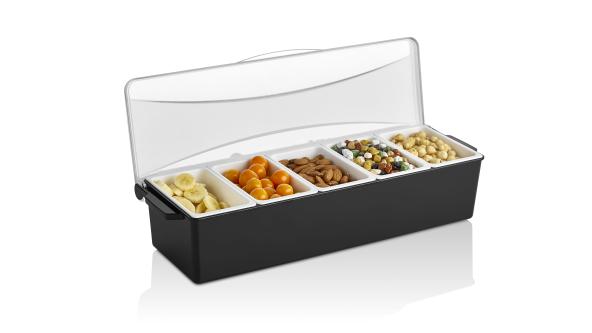 Контейнер для фруктов, специй и соусов 5 отд. по 0,45 л. черный, пластик. GP /1/12/
