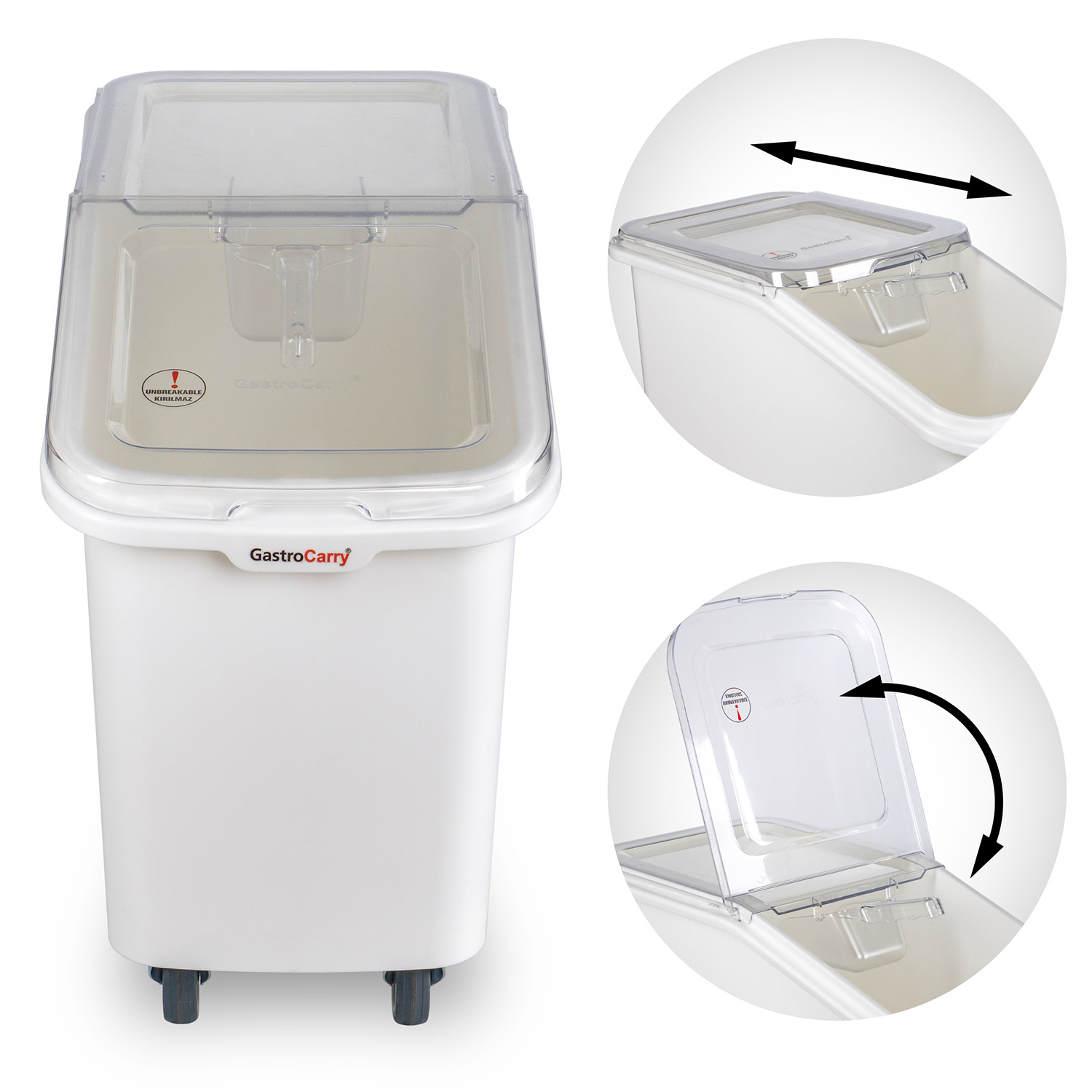 Контейнер для сыпучих продуктов 62 л 340*720*580 мм. (-40°C /+70°C) п/п на колесах, с совком, белый GP /1/4/