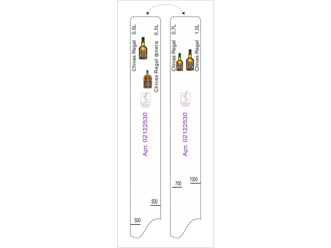 Линейка Chivas Regal (0.5л./0.7 л./1 л.)/ фляга (0.5л.) L=28 см. В=2 см. /1/