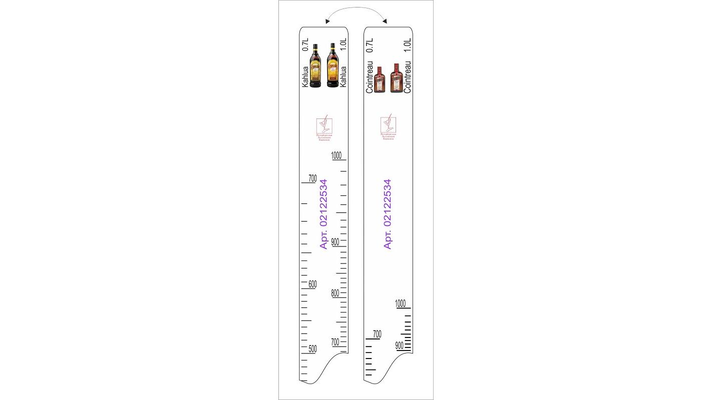 Линейка Cointreau (0.7л./1л.)/ Kahlua (0.7л./1л.) L=28 см. В=2 см. /1/