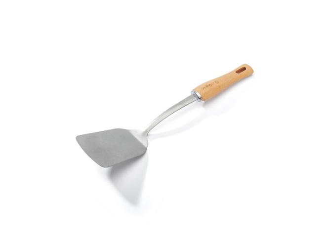 Рабочая часть металлической лопатки довольно жесткая, поэтому не подходит к посуде с антипригарным покрытием.