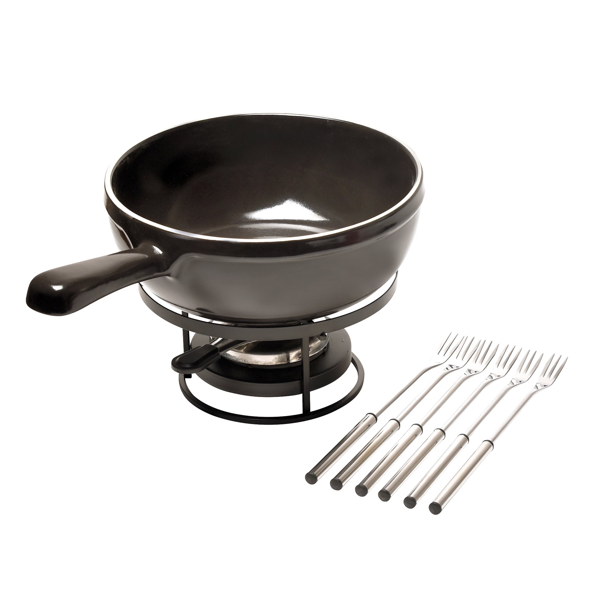 Набор для фондю 2,5 л. h=90 мм. d=220 мм. на подставке с вилками (6 шт.) черный керам Emile Henry /1/