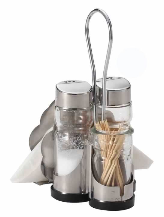string(262) "Набор предметов для специй с салфетницей, в который входит солонка и перечница + стаканчик для зубочисток.