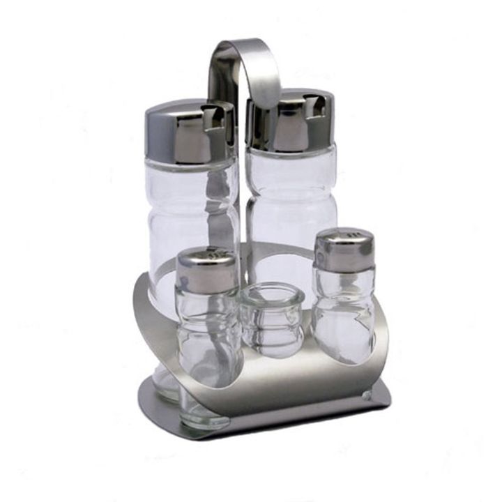 string(284) "Набор предметов для специй, в который входит солонка, перечница, емкости для масла и уксуса + стаканчик для зубочисток.