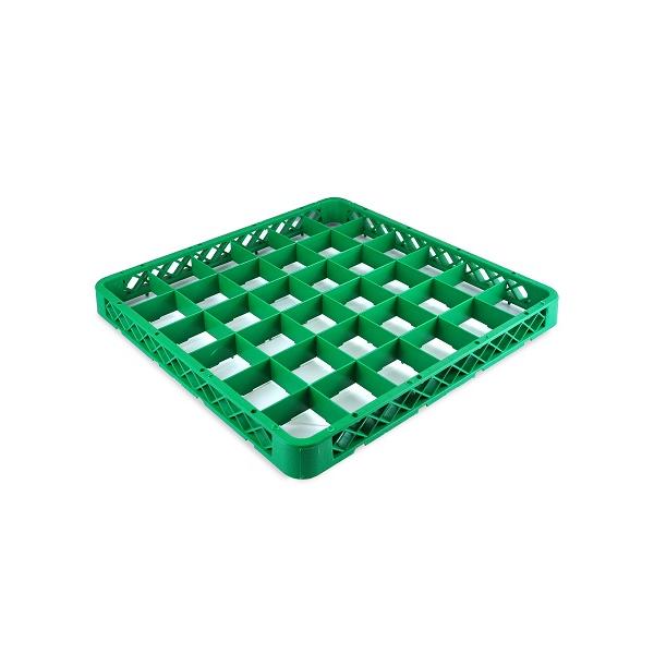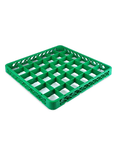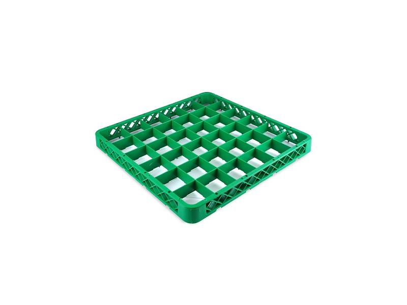 Надстройка для кассеты 36 секций, зелёная (полипропилен) используется как дополнительный элемент для установки на основную кассету с целью увеличения её высоты. Кассеты применяются для мытья одноразмерной посуды (фужеров, бокалов и др.), кухонного инвентаря, столовых приборов на профессиональной кухне предприятий общественного питания. Кассеты имеют стандартные размеры, что позволяет использовать их во всех существующих профессиональных посудомоечных машинах: фронтального, купольного и туннельного типа. Максимальный диаметр посуды для размещения в ячейках кассеты 74 мм. Помимо мойки, кассеты используются для хранения и транспортировки посуды из моечной зоны в зону раздачи, что позволяет избежать её загрязнения и значительно уменьшить бой посуды.
