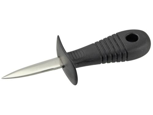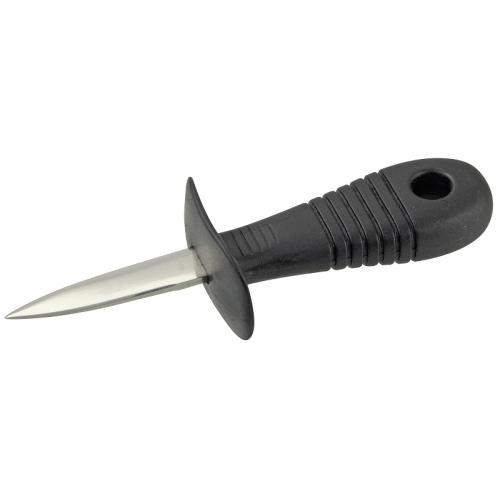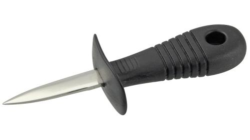 Рукоять ножа с защитой пальцев выполнена из пластика с нескользящей поверхностью и широкой задней частью, что позволяет крепко и безопасно держать нож при открывании моллюска.