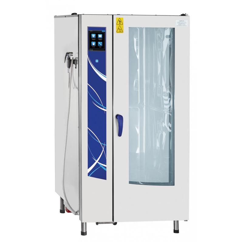 Пароконвектомат Abat ПКА 20-1/1ПП предназначен для приготовления разнообразных блюд из мяса, рыбы и птицы, гарниров и выпечки. В процессе готовки продукты сохраняют в себе питательные вещества. Механизм дверки духовки позволяет легко закрывать дверку одним движением и защищает от воздействия горячего пара.
