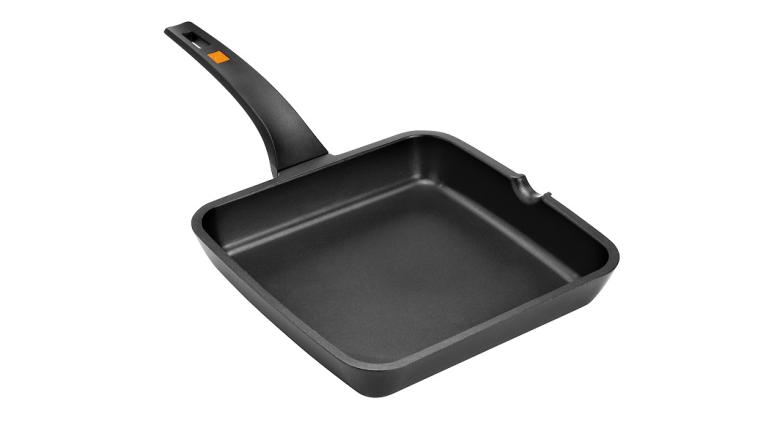 Ручка произведена из термостойкого материала, имеет эргономичную форму, что позволяет легко штабелировать сковородки при хранении