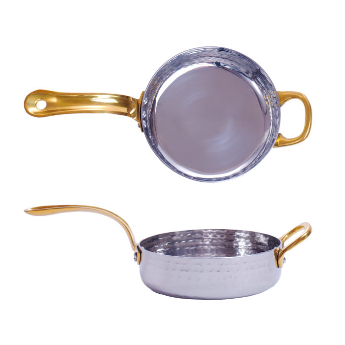 Сковорода порц. d=12 см. h=3,5 см. 0,4 л. нерж. глубокая с 2 ручками латунь MGsteel /1/36/ АКЦИЯ
