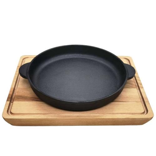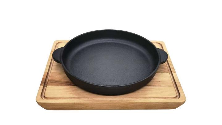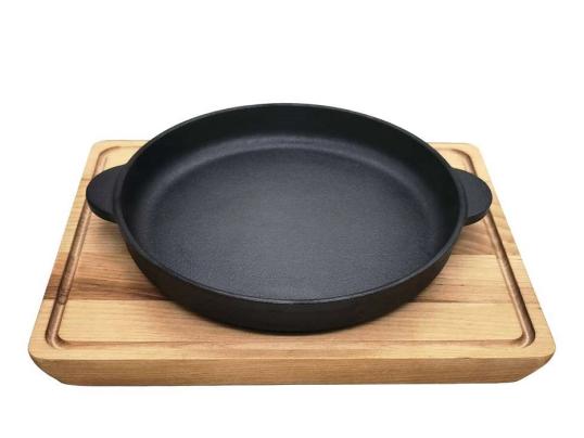 Сковорода порц. d=18 см. h=3 см. чугун. с 2 ручками на дерев. подставке /1/6/