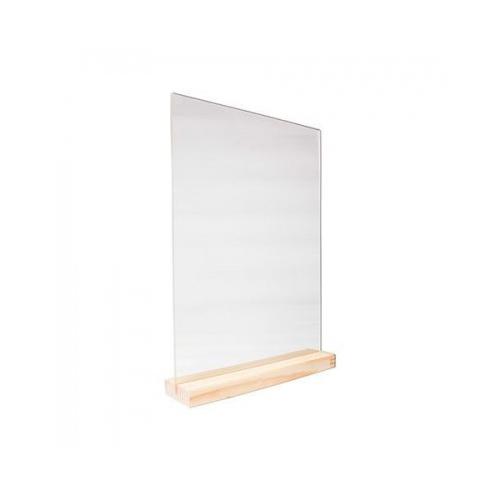 Табличка 210*300 мм. А4 пласт. вертикал. прозрач. тейбл тент на дерев. подставке /1/5/10/