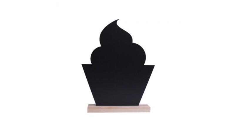 Тейбл-тент меловой или меловая табличка на подставке в форме Капкейк предназначена для написания меловым маркером рекламных материалов, меню, актуальных предложений.