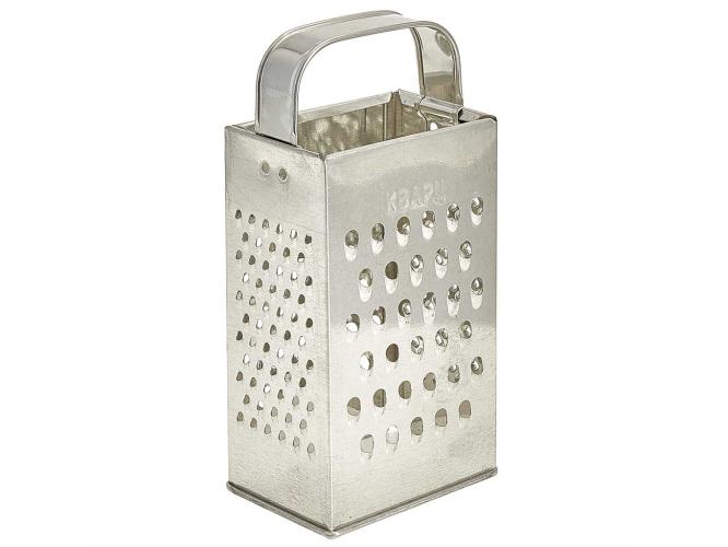 Четырехгранная терка из белой жести оснащена удобной ручкой.